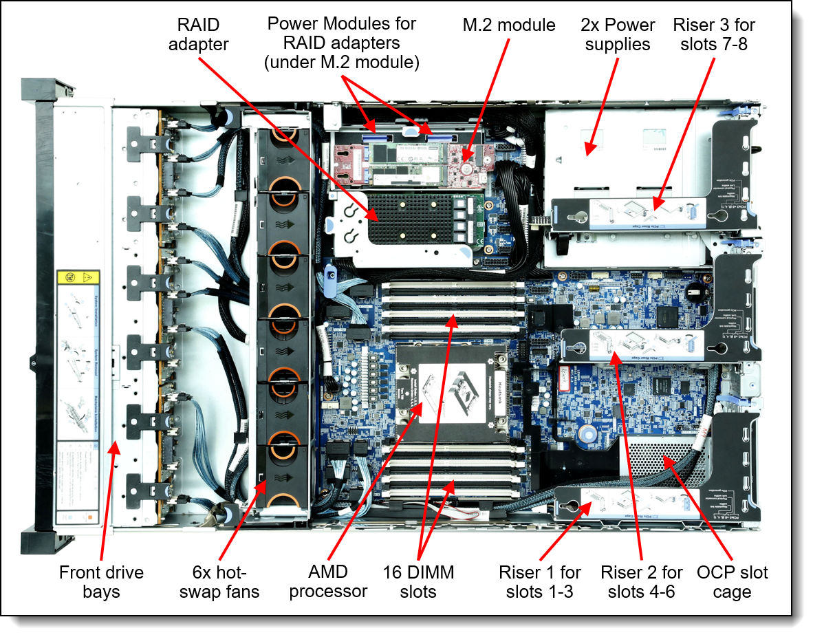 Lenovo ThinkSystem SR655 Rack Server is a multi-GPU optimized rack server, with support for up to 6 single-wide GPUs providing 200% more workload acceleration in AI, SDI, and VDI instances. Capacity for up to 32x 2.5” low-latency NVMe drives that pairs well with the demands of low-latency, high-bandwidth storage such as clustered SAN solutions and software-defined storage. Eight PCIe Gen4 slots offer 2x faster I/O and support for 16 DIMMs with 2TB of DDR4 memory capacity ensure the Lenovo ThinkSystem SR655 Rack Server is ideal for high-performance database applications.